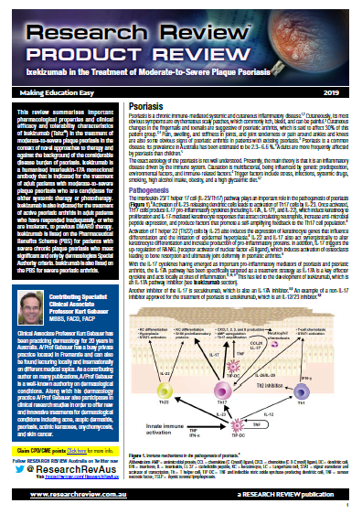 This review summarises impor tant pharmacological properties and clinical efficacy and tolerability characteristics of ixekizumab (Taltz®) in the treatment of moderate-to-severe plaque psoriasis in the context of novel approaches to therapy and against the background of the considerable disease burden of psoriasis.