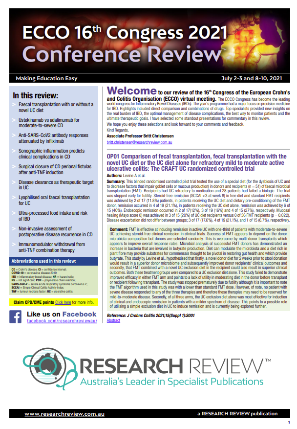 Faecal transplantation with or without a novel UC diet