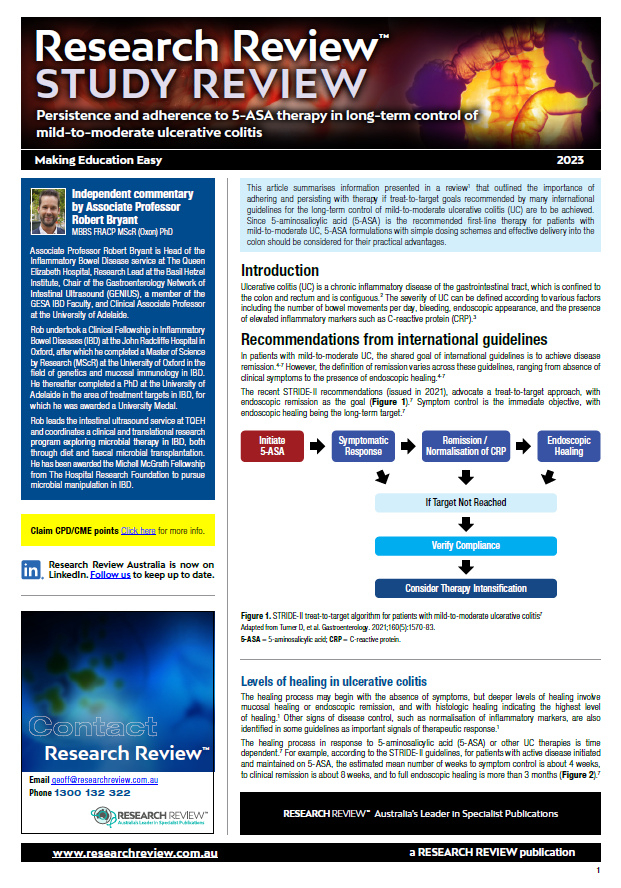 As part of our ongoing aim to bring you interesting reports, we have added a summary of a review that outlined the importance of adhering and persisting with therapy for the long-term control of mild-to-moderate ulcerative colitis.