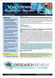 This Review features key medical articles from global journals with commentary from Professor Paul Van Buynder. The Review covers topics such as guidelines, international vaccination programs, outcomes of local vaccination scheduling, new developments in vaccines, dosing schedules, paediatric and adult vaccination and vaccine development.