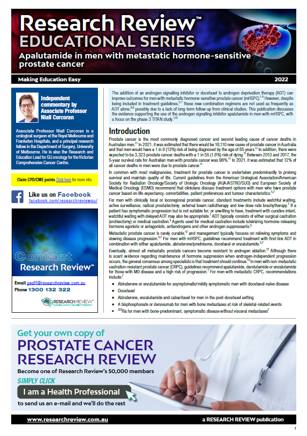 The review includes guiding commentary from Associate Professor Niall Corcoran, a urological surgeon at the Royal Melbourne and Frankston Hospitals, and a principal research fellow in the Department of Surgery, University of Melbourne.