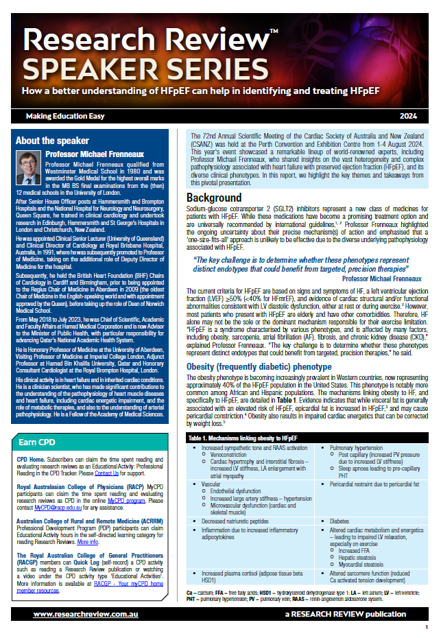 We’re delighted to add a summary of a recent presentation titled: How a better understanding of HFpEF can help in identifying and treating HFpEF.