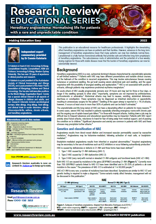 Educational Series – Hereditary Angioedema: Normalising life for patients with a rare and unpredicta