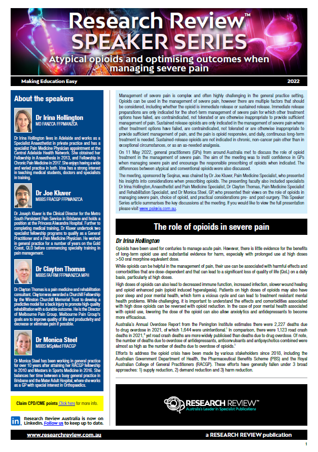 Speaker Series – Atypical opioids and optimising outcomes for severe pain