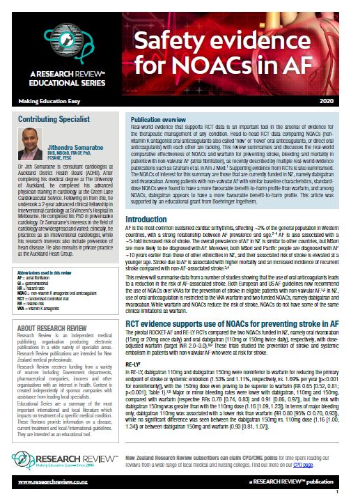 The NOACs of interest for this summary are those that are currently funded in NZ, namely dabigatran