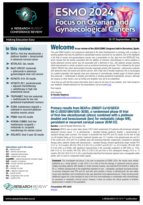 ESMO 2024 Conference Review – Focus on ovarian and gynaecological cancers