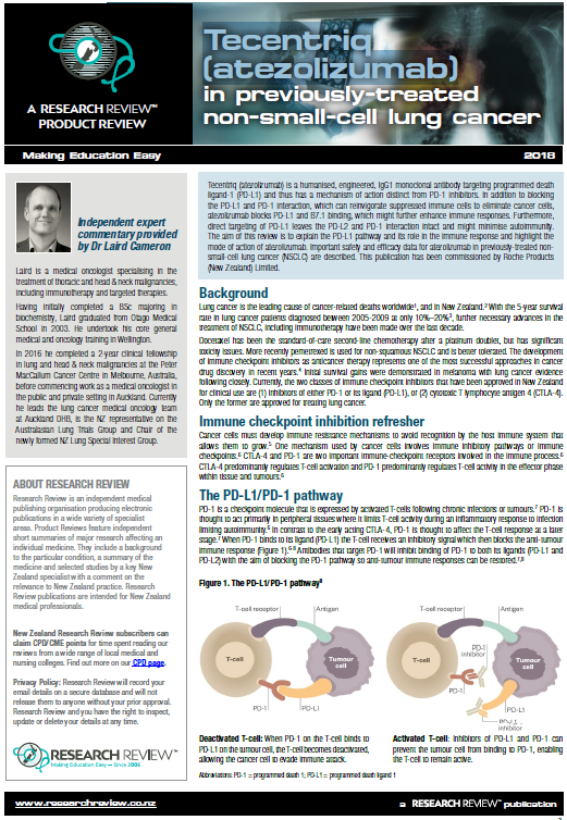 mode of action of atezolizumab. Important safety and efficacy data for atezolizumab in previously-treated nonsmall-cell lung cancer (NSCLC) are described.
