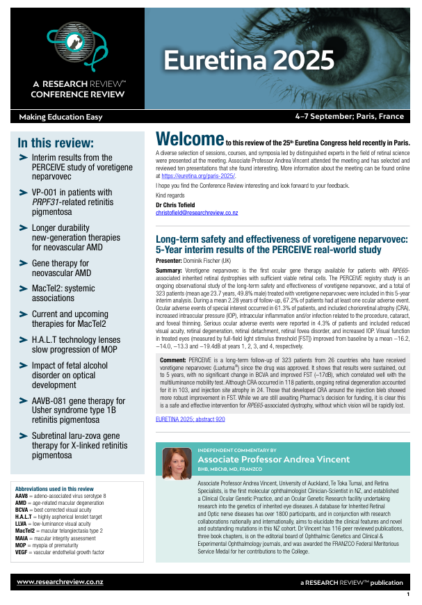 - Interim results from the PERCEIVE study of voretigene neparvovec