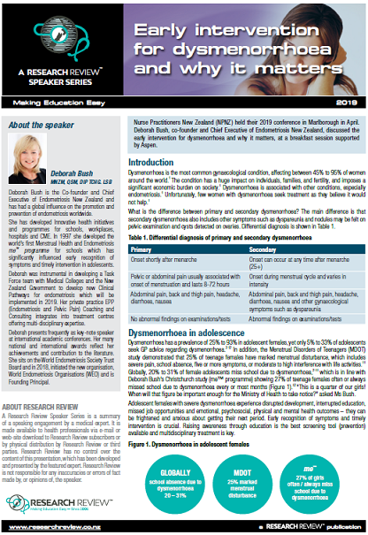 Nurse Practitioners New Zealand (NPNZ) held their 2019 conference in Marlborough in April. Deborah Bush, co-founder and Chief Executive of Endometriosis New Zealand, discussed the early intervention for dysmenorrhoea and why it matters, at a breakfast session supported by Aspen.